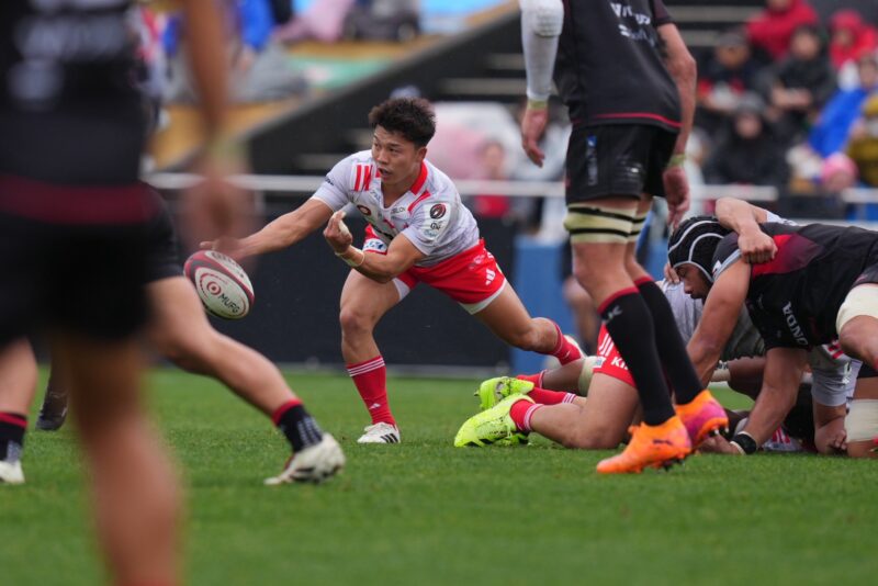 「日和佐さんにアクシデントがあり、前半20分くらいから出る可能性があると聞いていたので、いつでも行けるよう心の準備はできていました。雨というコンディションの中、自陣ではキックを使って敵陣に入り、敵陣に入ったら思い切ってアタックを仕掛けていこうとブリン(・ガットランド)とも話をしていたこともあり、迷いなく思い切ってプレーすることができました。それが良い結果につながったと思います。開幕戦は後半途中から出場し、自分のキックから相手にカウンターアタックを許してトライに繋がってしまったという悔しさがありました。みんなからはあのシーンは僕だけのせいじゃないと声をかけてもらいましたが、責任を感じて。チームにもっと貢献したいと思い、今週はキックとパスに集中して、特にキックはマイク(・ブレアアタックコーチ)とマンツーマンで練習し、この試合に臨みました。自信を持って試合に入ることができたことも良かったです。試合終盤、三重Hに勢いが出てきて受け身になるところがありましたが、ディフェンスでしっかりプレッシャーをかけて、チームで戦い勝利することができました。次節はプレシーズンで負けたトヨタVとの対戦になります。プレシーズンの借りを返せるようにまた1週間良い準備をして試合に臨みます!」