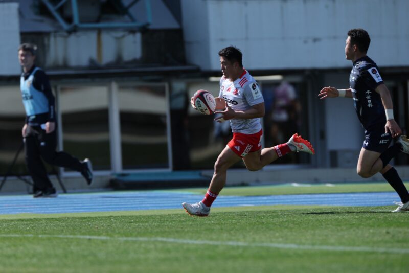 「まずチームとして自分たちの強みを出せて、いい形で第7節からの4試合を終えることができて良かったと思います。今日は前半に関してはオフロードの精度が低かったのですが、後半は修正し、空いているスペースにボールを運んでゲインラインを切ってボールを繋いでトライを取り切ることができました。ミスもありましたが、この4試合はキックオフからのアタックやフェイズ中でも乗り勝ってプレーできていましたし、しっかりコネクションを取りながら良いディフェンスができるようになって、プレーの精度や正確性といったところは成長を感じています。個人的には第8節からウイングでプレーするようになりました。上ノ坊(駿介)が加わり、バックスリーの競争はより一層激しくなっています。そういう中で、今日はディフェンスの際に山中(亮平)さんに寄ってしまって、トライに繋がるシーンがあって。この部分は簡単な判断ミスだったと思うので修正していかないといけません。若手に刺激をもらいながら、試合に出たら自分の役割を全うし、強みもどんどん出すことができるようにしていきたいと思います!」