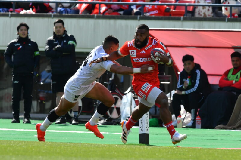 風上に立つ後半。ハーフタイムには風を活かしながらテリトリーを獲得し、敵陣でプレーしようと指示が入った。しかも、相手は前半終了間際、故意にパスを叩き落としたとしてLOセルにイエローカードが出されている。畳み掛けたいところだったが、後半開始早々、繋ぎのミスや反則が出て、自陣でのプレーを強いられる。5分、FWのダイレクトなプレーでゴール前まで迫られると、最後は展開されトライを献上。その後も反則が続くなど、ピリッとしない展開が続く。13分には自陣で20フェイズ以上の連続攻撃を受ける。ここはPR具がスティールしピンチを脱する。20分にも自陣深くでLOレタリックがブレイクダウンでスティールするなど、ディフェンスの中で好プレーが随所に出るも、流れを掴むことはできない。神戸Sの後半最初のトライは、29分。FWの力強いプレーで前進し、ゴール前で反則を得ると、HOディクソンのタップキックからボールを繋いで、最後はLOレタリックが飛び込みトライ。35分には、相模原DBに反則の繰り返しで、LOコーヘレンバーグにイエローカードが提示されると、神戸Sはゴール前でのラインアウトからモールを押し込み、HOディクソンがトライゾーンへ。SOガットランドが自身にとって490点目となるゴールキックを決めて、61-5に。38分、NO8フナキにイエローカードが出て、終了間際にラインアウトから攻撃を仕掛けられてトライを許すも、61-10で神戸Sが勝利を掴み、勝ち点5を上乗せ。プレーヤー・オブ・ザ・マッチにはSO李が選ばれた。