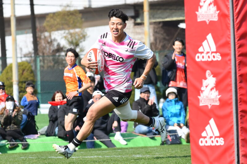 前半大活躍だったポルテレらを代えて、SA広島のキックオフではじまった後半。自陣で反則を犯し、この試合初めてピンチを迎える。2分、ゴール前でのラインアウトからモールを押し込まれてトライを献上。ゴールキックも決まり、54-7に。しかし、その2分後、ハーフライン付近でのキックキャッチから攻め込むと、SO伊藤がラインブレイク。サポートしていたSH徳田にパスを回すと、最後はNO8ファカタヴァがトライ。攻撃の手を緩めない神戸Sは直後のキックオフのボールを受けるとアタックを展開し、SO伊藤が裏へとキック。FL橋本がキャッチし抜け出すと、パスを繋いで、最後はLO今村がトライゾーンへ。SO伊藤のゴールキックも決まり、68-7。メンバーを大幅に交代する中で、それぞれが強みを発揮して敵陣深くに攻め込むも、ディフェンスに阻まれ得点を上乗せすることができない。スコアボードが動いたのは、34分。ハーフライン付近で鋭い出足で激しいディフェンスを浴びせてボールを奪いアタックに転じると、パスを受けたWTB船曳がキックを転がす。SA広島陣22mライン付近でターンオーバーし、素早くボールを繋いで、最後はLOタキヴェタウアが右コーナーへ。37分にもターンオーバーからアタックを展開し、SO大町のキックパスをキャッチしたWTB杉本がトライラインまで走り切り、フィニッシュ。さらに、39分にWTB船曳、43分にもWTB杉本がトライをマーク。最終スコア94-7で神戸Sが勝利した。