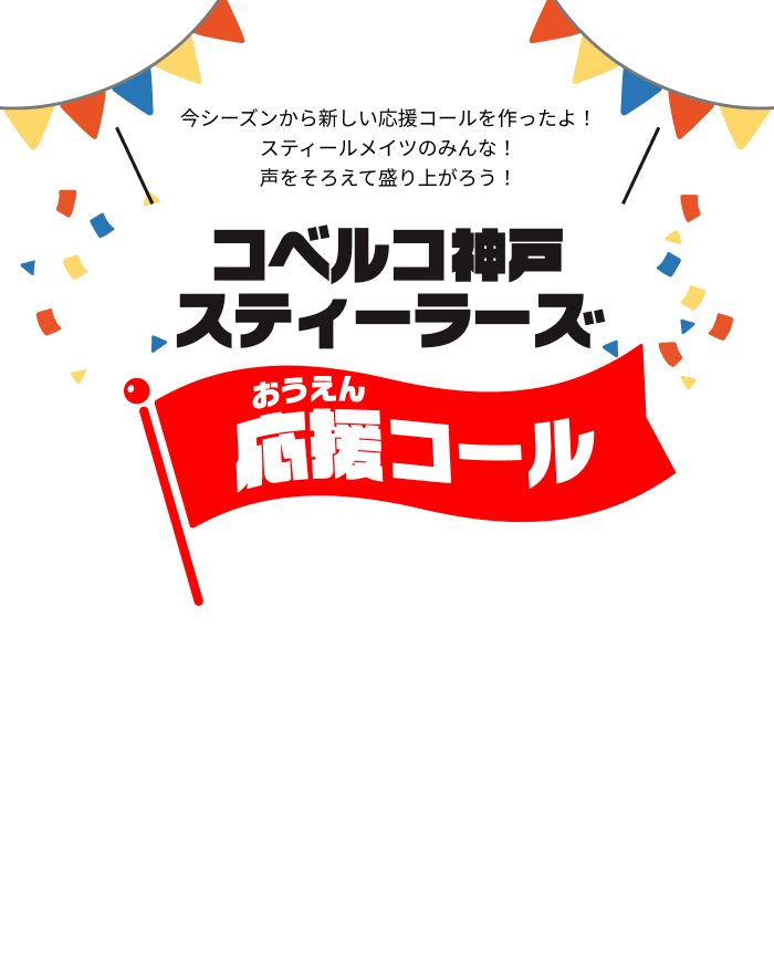 スティールメイツとチームが一つになるための応援コールになりますので席種に関係なく選手に声を届けましょう!