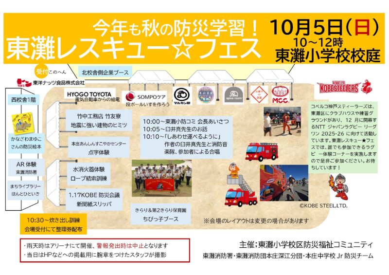 このたび10月5日(日)に東灘小学校において「東灘レスキュー☆フェス」が開催されます。