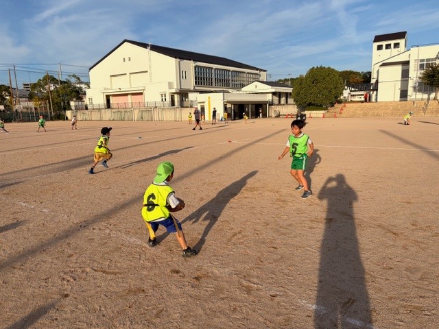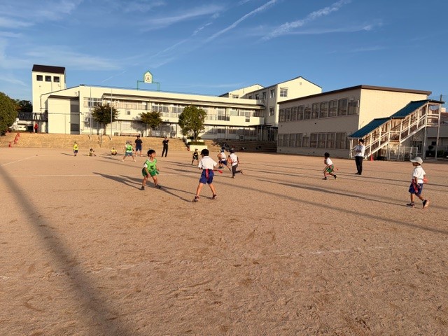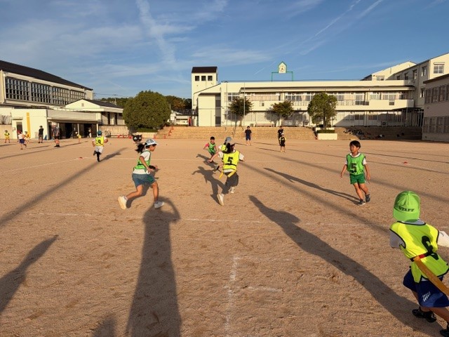 10月6日(月)に神戸市立東町小学校で普及・アカデミー担当の今村スタッフと山本スタッフがタグラグビー教室を実施しました。
