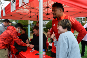 ★神フェス2024ではラグビー部OBの橋本 大輝氏をはじめ多くのOBがラグビー体験を手伝ってくれました!