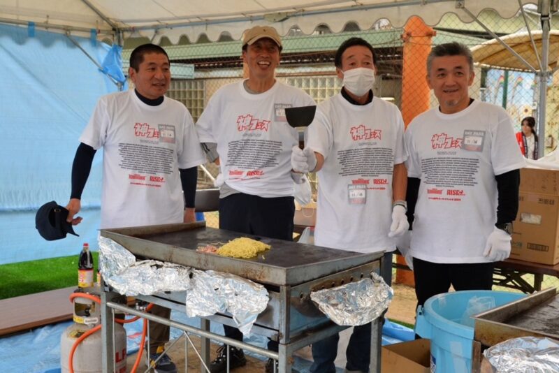 ★神フェス2024では福本 正幸前チームディレクター、ラグビー部OBの林 敏之氏、萩本 光威氏も一生懸命、焼きそばを焼いていました!