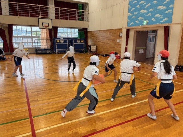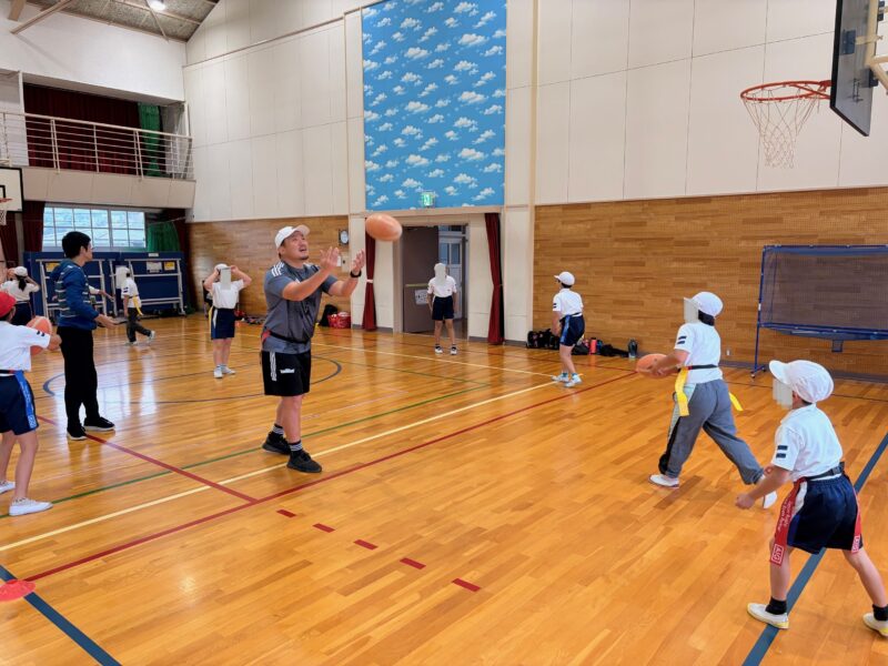 10月22日(水)に神戸市立淡河小学校で、普及・アカデミー担当の今村スタッフと山本スタッフがタグラグビー教室を実施しました。
