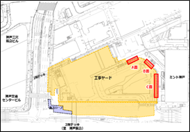 ■設置場所:三ノ宮駅南側 三ノ宮新駅ビル工事ヤード囲い(下図赤枠図)
