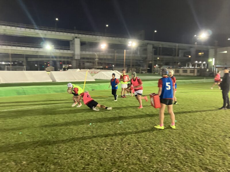 小学生コースでは、サポートプレーヤーがボールをもらう時のスピードにフォーカスしました。これまで3週間積み上げてきたことが実り、この日の練習では精度があがりました。スタンダードを落とさないためにも、継続して取り組んでいきます。中学生コースも、サポートプレーヤーにフォーカスし、ボールキャリアがタックルされた後の状況に合わせて、オフロードなのか、ブレイクダウンにコミットするのか、状況を判断する練習をしました。中学生コースも継続的に積み上げていきたいと思います。