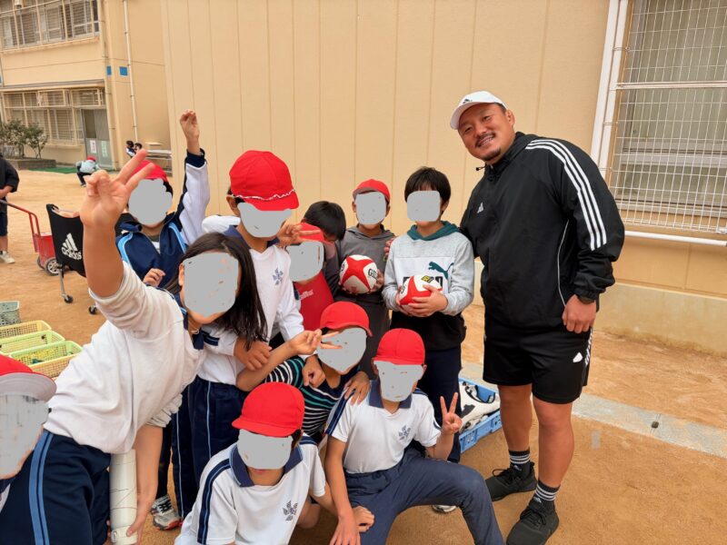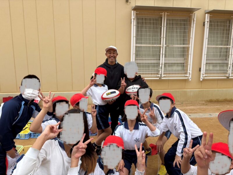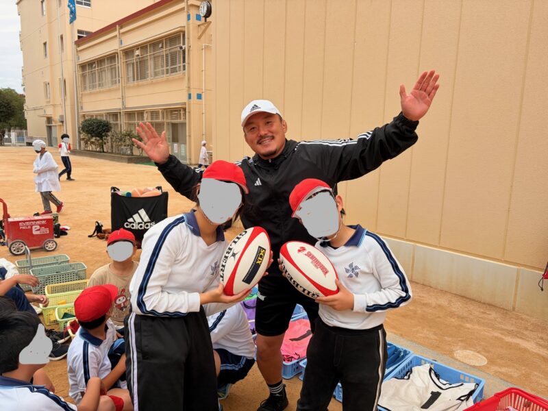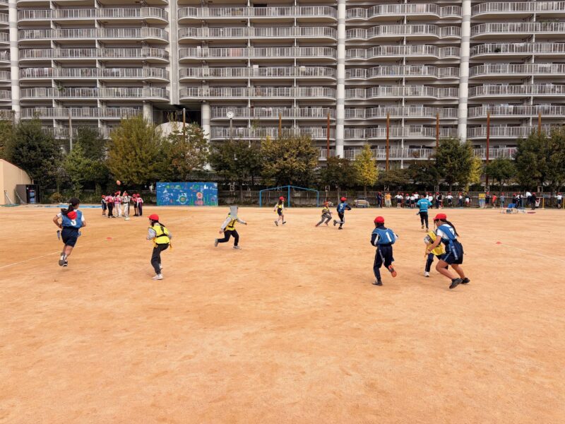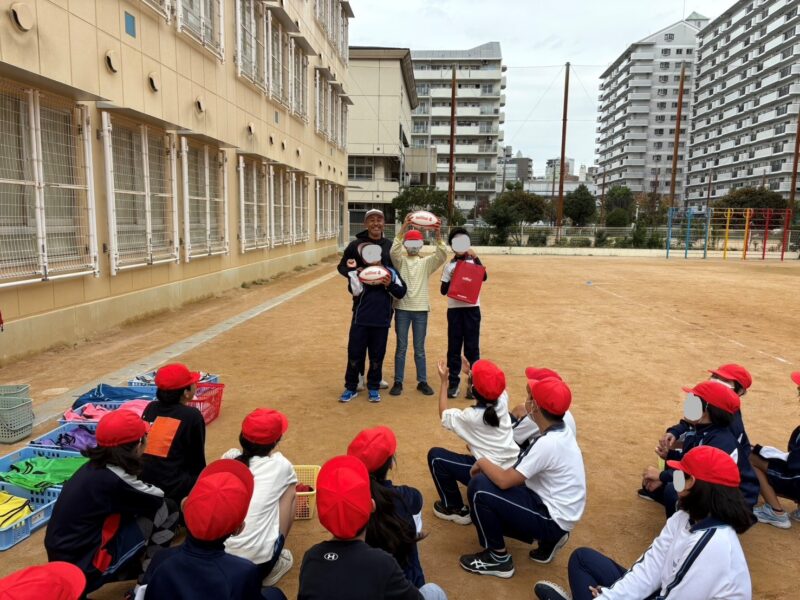 11月5日(水)に神戸市立湊小学校で、普及・アカデミー担当の今村スタッフと山本スタッフがタグラグビー教室を実施しました。