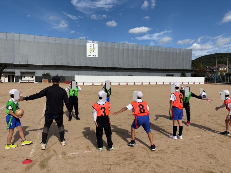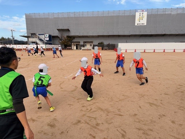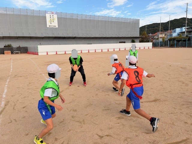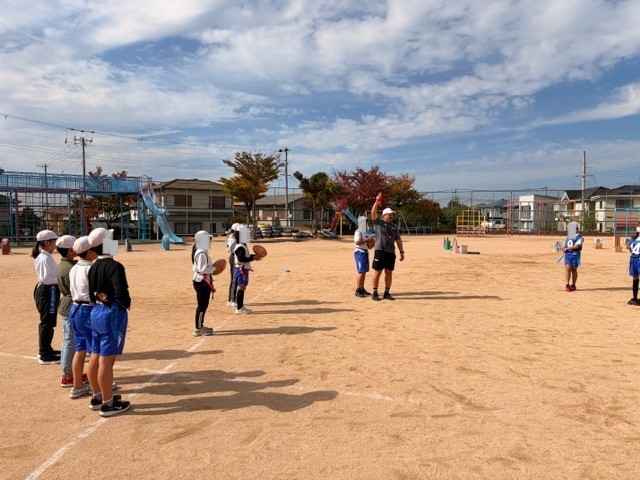 11月11日(火)に神戸市立塩屋北小学校で、普及・アカデミー担当の今村スタッフと山本スタッフがタグラグビー教室を実施しました。