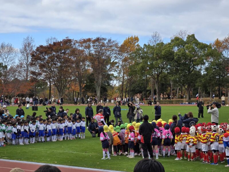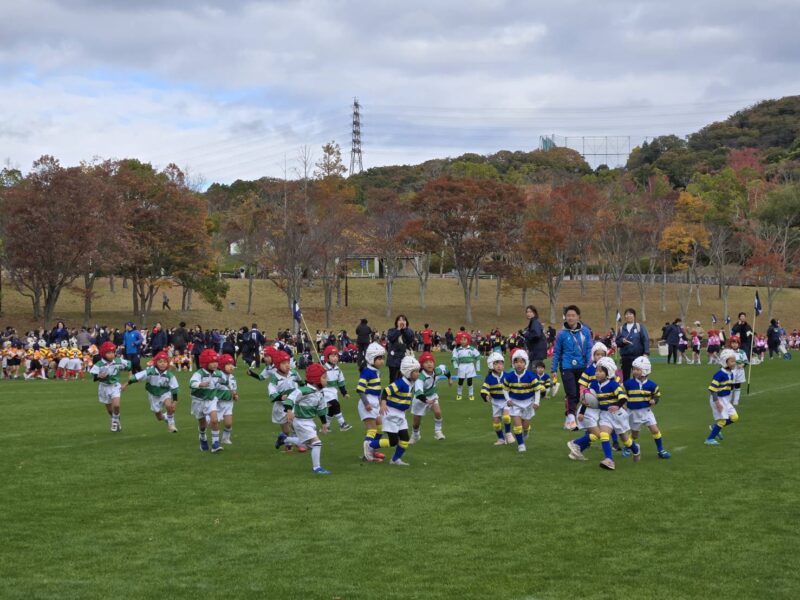 11月19日(水)、「第10回kobeっこ親善ラグビー大会」が神戸市北区にあるしあわせの村にて開催されました。好天に恵まれた当日は、16幼稚園・こども園等から650人の園児が参加しました。