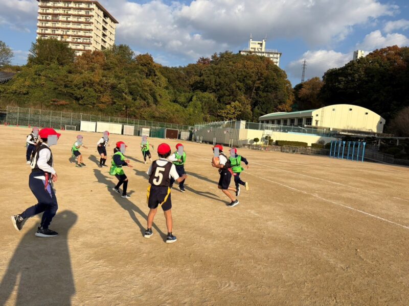 普段クラブ活動でタグラグビーをしている子が多く、運動能力の高い子も多かったため、かなりレベルの高いタグラグビーの試合ができました。花山小学校でタグラグビーをしてくれる子たちがもっと増えることを願っております。