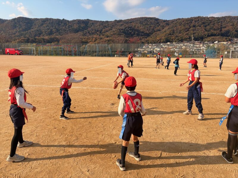 11月21日(金)に神戸市立花山小学校で、普及・アカデミー担当の今村スタッフと山本スタッフがタグラグビー教室を実施しました。