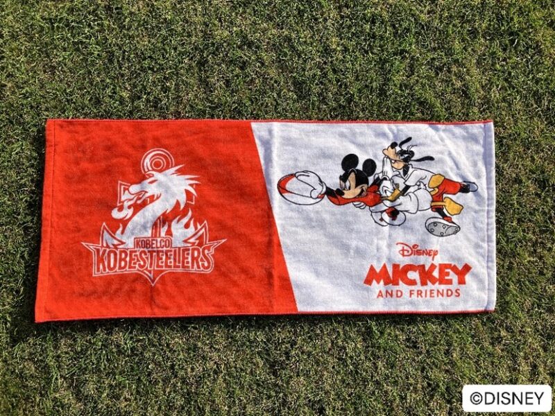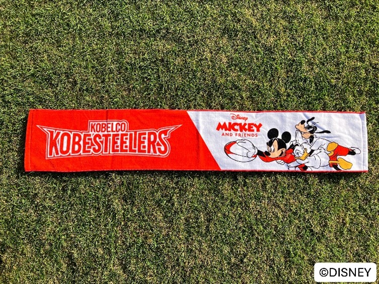本コレクションでは、ミッキー&フレンズの人気キャラクターたちが、コベルコ神戸スティーラーズのチームカラーを身に纏った特別デザインで登場します。