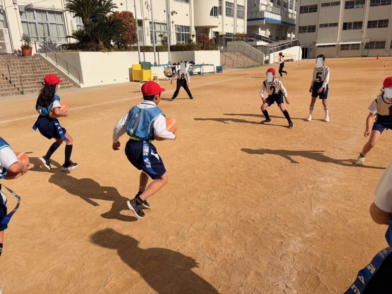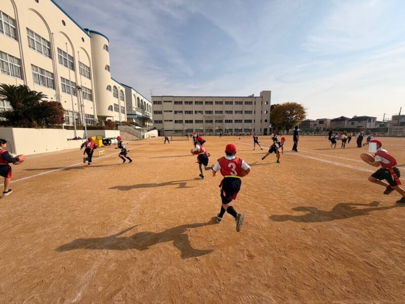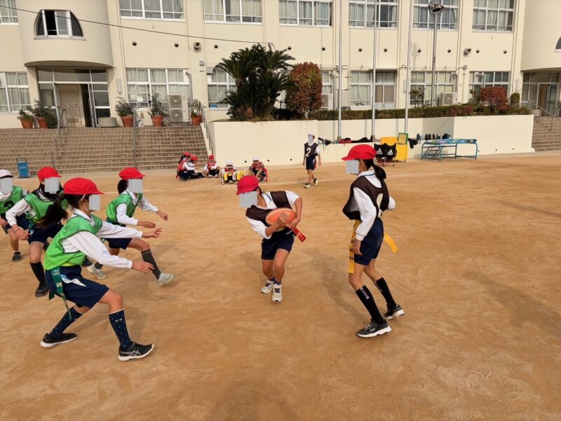 12月2日(火)、4日(木)に神戸市立本山第二小学校で、普及・アカデミー担当の今村スタッフと山本スタッフがタグラグビー教室を実施しました。