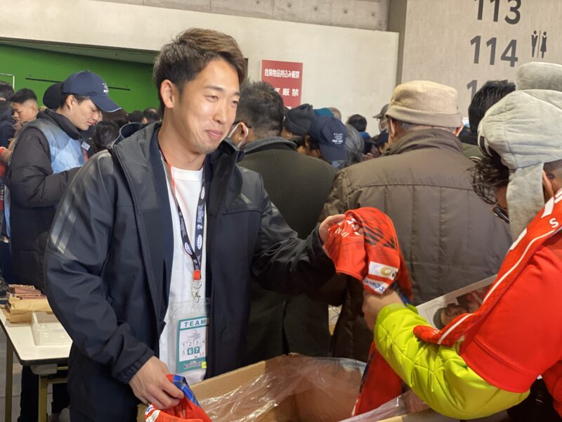 大勢の方々に楽しんでいただこうと【KOBE“SMILE”PARK】ではさまざまなイベントを実施。場内ではホストゲーム開幕戦ではお馴染みとなった「シーズン記念Tシャツ」のプレゼント(先着15,000名様)をはじめ、素敵な賞品が当たる「ハーフタイム抽選会」や「応援メッセージ企画」、場外ではコーロクンのワンダーランドやラグビー体験コーナーなど、ホストゲームならではのスペシャル企画もご用意。また試合に出場しないノンメンバーの選手たちもスタジアム入場口でシーズン記念Tシャツの配布を手伝い、来場された皆様を笑顔でお迎えしました。