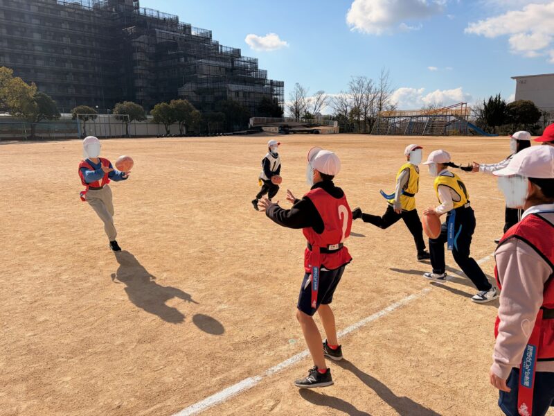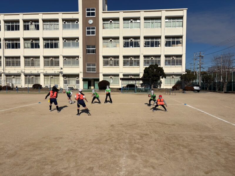 1月9日(金)に神戸市立東落合小学校で、普及・アカデミー担当の今村スタッフと山本スタッフがタグラグビー教室を実施しました。
