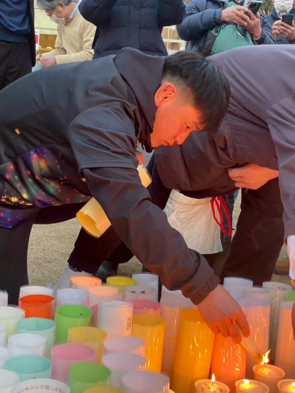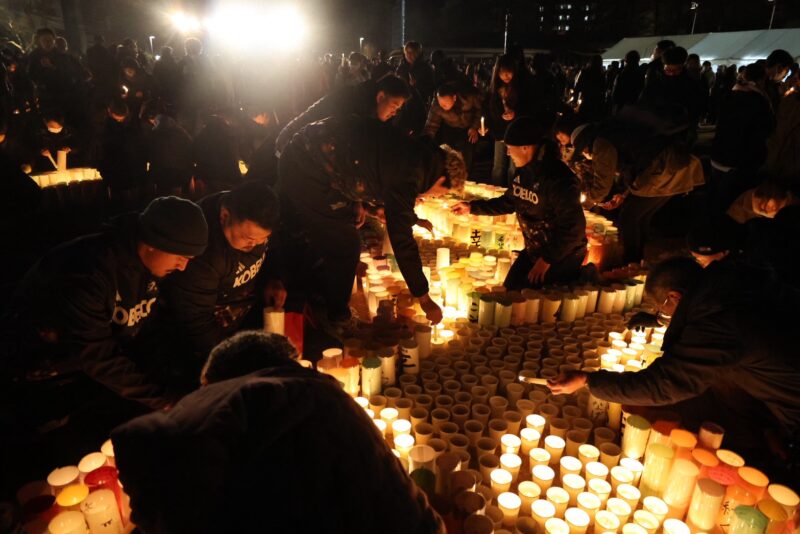 毎年1月16日、17日に神戸市中央区の東遊園地で行われる「阪神淡路大震災1.17のつどい」は、阪神・淡路大震災でお亡くなりになられた方を追悼するとともに、震災で培われた「きずな・支えあう心」「やさしさ・思いやり」の大切さを次世代へ語り継いでいくために実施されています。