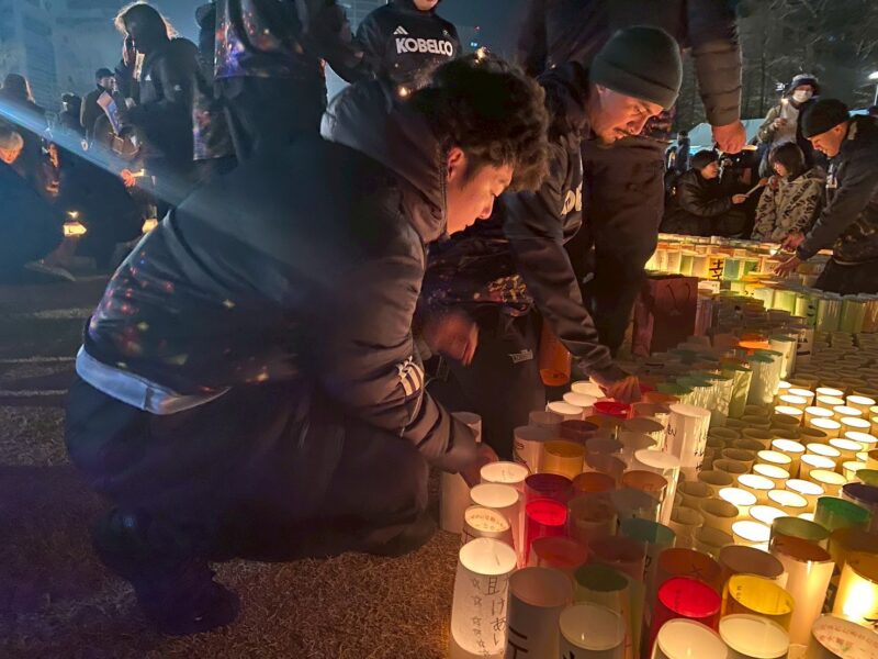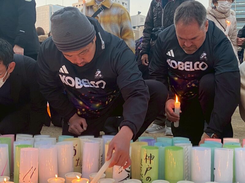 今年の「1.17のつどい」で灯篭を使って描かれた文字は、「つむぐ」。「震災の記憶と教訓を先の世代につないでいく」というメッセージが込められています。その言葉の通り、これからもコベルコ神戸スティーラーズは阪神・淡路大震災のことを語り継ぎ、次世代へとつないでまいります。
