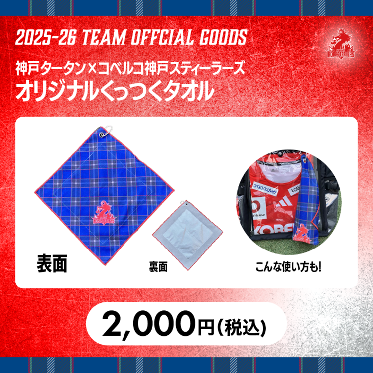 ≪神戸タータン×コベルコ神戸スティーラーズ オリジナルくっつくタオル:2,000円(税込)≫