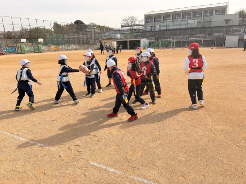 2月24日(火)に神戸市立長坂小学校で、普及・アカデミー担当の今村スタッフと山本スタッフがタグラグビー教室を実施しました。