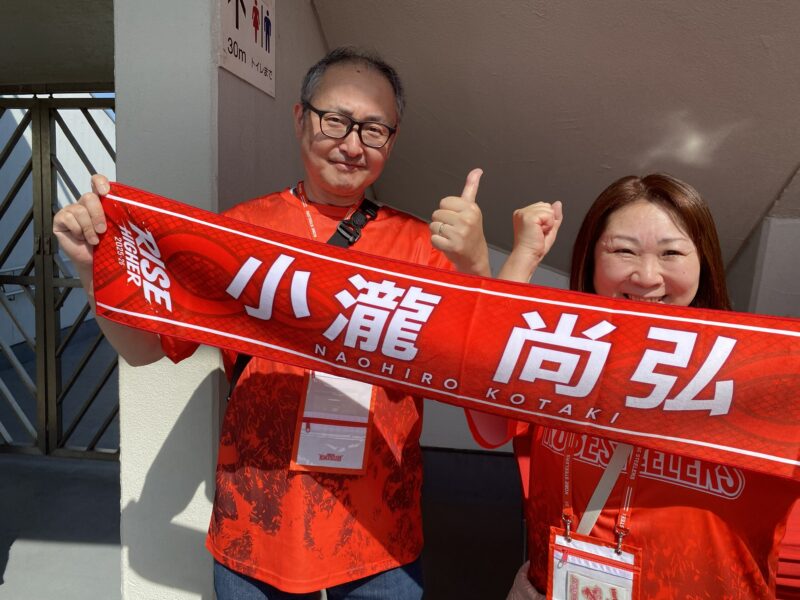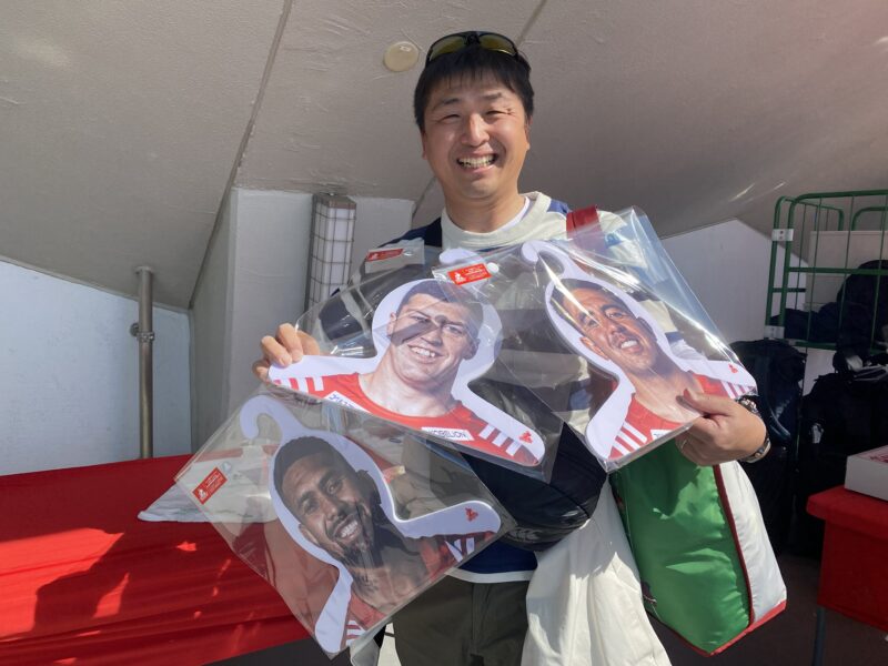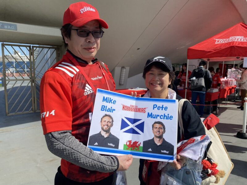 今シーズン終了後、ウェールズ代表のディフェンスコーチ就任が発表されたピート・マーチィディフェンスコーチ、そしてスコットランド代表でもコーチ経験のあるマイク・ブレアアタックコーチの応援ボードを持ってご来場いただきました。