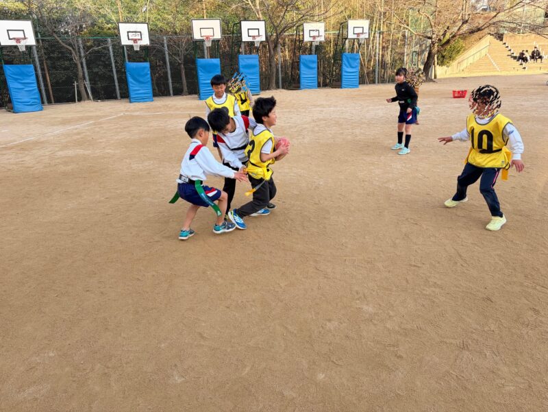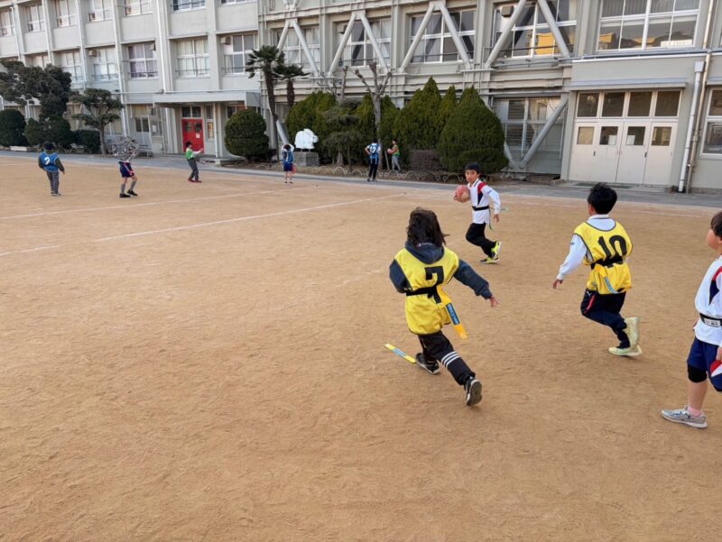 3月9日(月)に神戸市立白川小学校で普及・アカデミー担当の今村スタッフと山本スタッフがタグラグビー教室を実施しました。