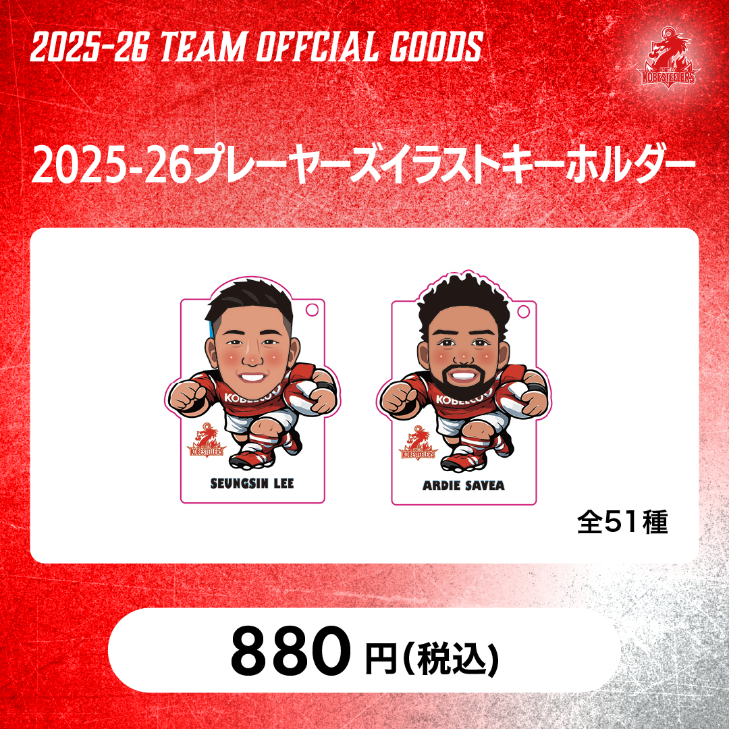 また、2025-26シーズンに所属する選手たちをイラストでデザインしたキーホルダーも新登場いたします。お気に入りの選手を身近に感じられ、観戦時はもちろんバックにつけても楽しめるアイテムです。