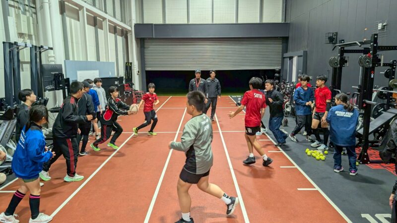 中学生コースでは、ボールキャリア、ハンズキャッチに加えて、中村S&Cコーチに身体の使い方を教えてもらいました。小学生、中学生ともに普段グラウンドで出来ない練習を集中力高く取り組めました。今回学んだことを忘れず、来週からの練習に活かしていきましょう!!