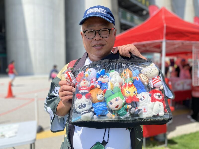 ボール型キーリングをご購入いただいたVolts。お手製の推し活カバンの中には各チームのマスコットキャラクターに混じってコーロクンぬいぐるみも!4月23日(木)からはじまるマスコット総選挙ではコーロクンにもぜひ1票をお願いします