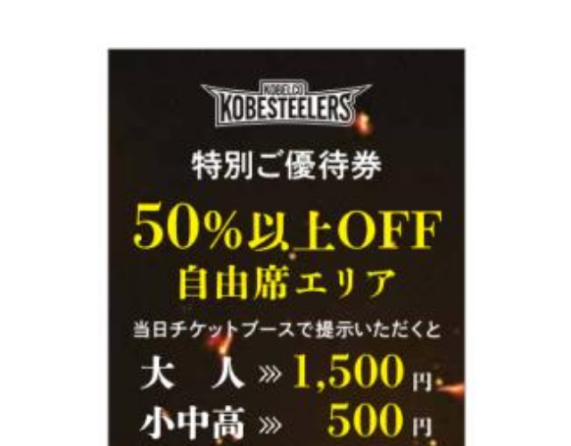 コベルコ神戸スティーラーズのホストゲームがお得に観戦出来るチケット優待リーフレットを送付いたします。有効活用いただき、ぜひスタジアムにお越しください。
